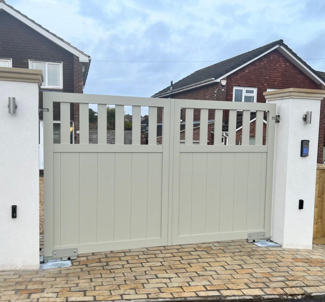 The Cheltenham aluminium gates offer a popular choice, with 2/3rd boarded and open slatted at the top, making it a great design for privacy. Popular with dog owners, as these gates help keep dogs on the driveway, without the feeling of being fully enclosed. Benefits of choosing aluminium include: -Corrosion Resistant Scratch Resistant -Stain Resistant -90% Recyclable UV Stable Frost Resistant Our gates are available as manual or automated, automatic gates are installed with the advanced brushless Roger Technology automation kit which will provide you with an electric gate that will provide years of convenience and security. There is also the option to add additional access control accessories such as keypads, GSM Intercoms or why not control your gate from your mobile phone? Why choose Alluminio Gates? -Made to order Innovative & modern designs -Practical solutions & support -Ready for manual or automation requirements -Guaranteed against UV discolouration Team of experts - Run by Engineers Maintenance Plans available All installations orders come with a free survey where we will carry out the measurements and laser levels for any order placed. We offer free consultations to help advise you on the different gate options and accessories. Order process Confirm order details with Alluminio Deposit raised 3. Drawing completed Drawing approved by customer Gate manufacturing completed (Time scale given) Gate delivered to site (Supply only) or delivered with Engineers for installation Order completed All installation order will have a technical on-site survey, which will include taking all measurements and laser details for the ground. Additional options such as mains power and access control can be discussed whilst on site. Ready to discuss your project in more detail? Contact our friendly team today Based from Gloucestershire & Bristol, we offer national Service, Repair and Installation for commercial and domestic customers. Aluminium Gates, Metal gates, Timber Gates, Composite Gates Automatic Doors, Swing Doors, Sliding Doors, Roller Shutters Commercial Gate systems, Turnstiles, Bollards, Blockers Access Control, Intercoms, Entry systems ☎️01452 447002 🛜www.esduk.co.uk 📧sales@entrancesuppliesdirect.co.uk Alluminio Ltd Is a brand name of Entrance Supplies Direct Ltd Aluminium Swing Gate, Aluminium Sliding Gate, Aluminium Bi-Folding Gate, Aluminium Cantilever Gate, Aluminium Telescopic Gate, Aluminium Side Access Gate, Aluminium Garden Gate, Aluminium Driveway Gate, Aluminium Pedestrian Gate, Aluminium Swing Driveway Gate, Aluminium Sliding Driveway Gate, Electric Aluminium Gate, Automatic Aluminium Driveway Gate, Aluminium Budget Gate, Aluminium Bespoke Gate, Aluminium Gates Made to Measure, Supply and Fit Aluminium Gate Aluminium Gate Installation, Luxury Aluminium Gate, Aluminium Gate Design, Affordable Aluminium Gate, Aluminium Gate Near Me, Aluminium Gate for Sale, Aluminium Gate Prices, Aluminium Gate Access Control, Aluminium Gate Maintenance, Aluminium Gate Repair
